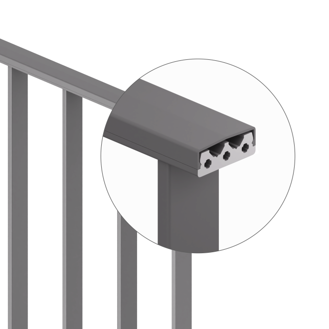 - umplutura balustradei este formată din balustri din aluminiu de 10 x 40 mm